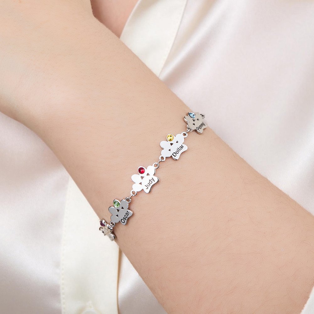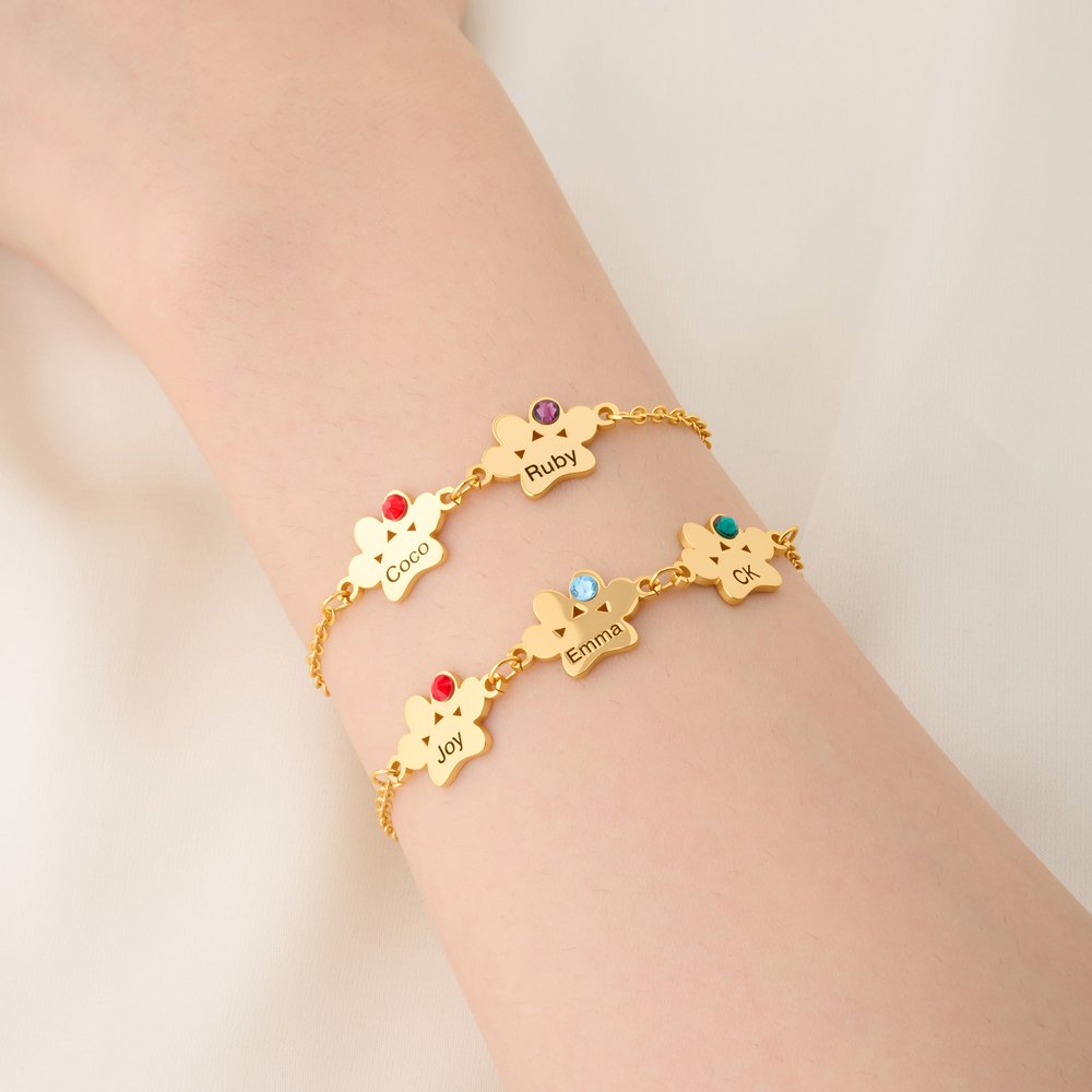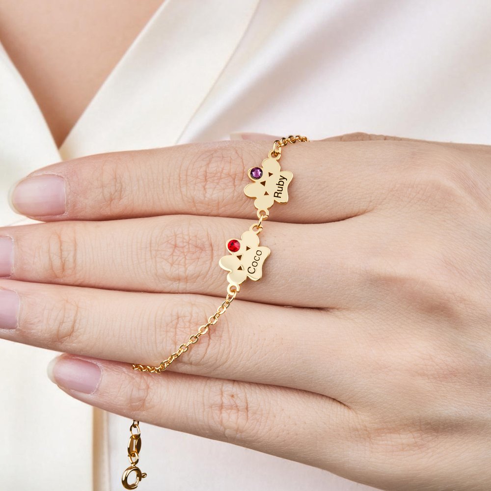 Dieses Armband mit niedlichen Pfotenabdrücken als Kernelement kann mit mehreren Geburtssteinen und dem Namen deines Haustiers individuell gestaltet werden; bis zu acht Pfotenabdrücke können eingraviert werden. Es ist ein kleines und exquisites Design, das deine Liebe zu deinem pelzigen Freund auf subtile Weise an deinem Handgelenk zum Ausdruck bringt.