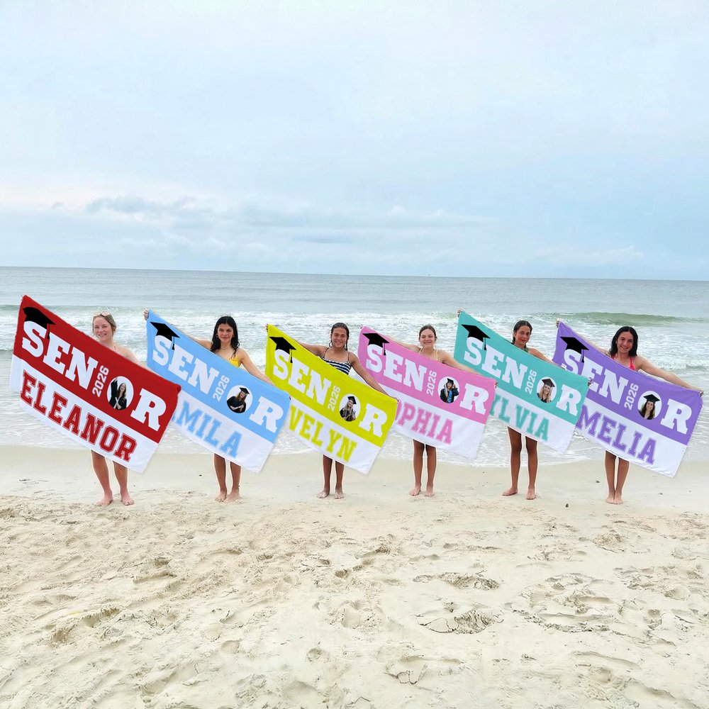 Dieses Handtuch ist im eleganten Graduation Scripty-Stil gestaltet und fängt den jugendlichen Geist der Abschlussfeier perfekt ein. Es kann mit einem Einzelporträt oder einem Gruppenfoto der Klasse und dem Namen des Absolventen individuell gestaltet werden, so dass ein wirklich einzigartiges Andenken entsteht. Es ist mehr als nur ein Handtuch, denn es bewahrt wertvolle Schulerinnerungen und unvergessliche Momente dieses besonderen Meilensteins auf.