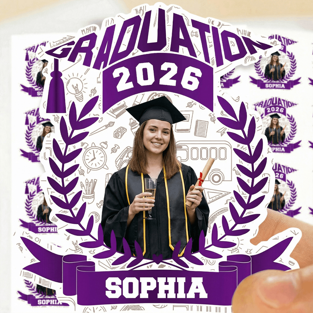 Diese farbenfrohen Abschlussaufkleber sind von den Meilensteinen der Studenten inspiriert und feiern die einzigartige Reise jedes Absolventen. Das kreative Layout integriert einen hochwertigen Foto-Upload mit einem individuellen Namen und einem bestimmten Abschlussjahr für einen wirklich maßgeschneiderten Look. Sie können aus acht kräftigen Farben wählen, die perfekt zu Ihrem Schulgeist passen.
